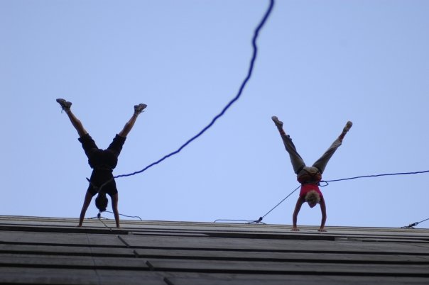 Recently I got a chance to combine two of my loves, hanging upside down on the side of a building, with yoga!