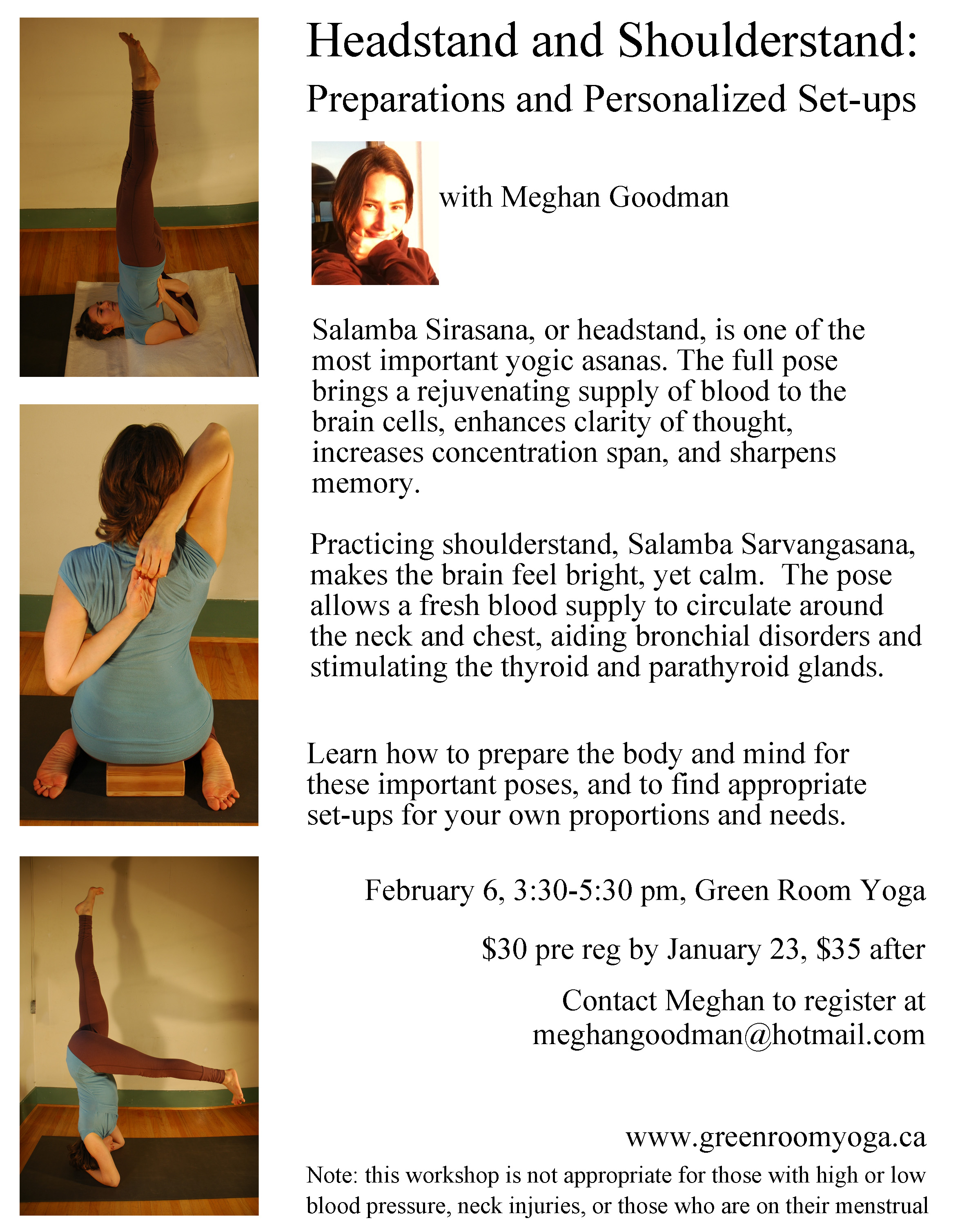 Please note that I am offering a special workshop focusing on preparations and set-ups for Headstand and Shoulderstand at Green Room Yoga on February 6th.