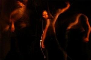 The other meaning of Tracing Traces is quite literal. In performance we set up a still camera in a darkened room and open the shutter for approximately one minute. The performer and/or light sources dance in front of the camera as a story is revealed, contrasting movement with stillness. We will be using hand-held light sources to expose the dancer(s) and/or props in space, creating striking, luminescent light paintings. The images created in the moment will support our selected stories. These photographs will be projected for the audience to view, adding a visual layer to the movement and text.